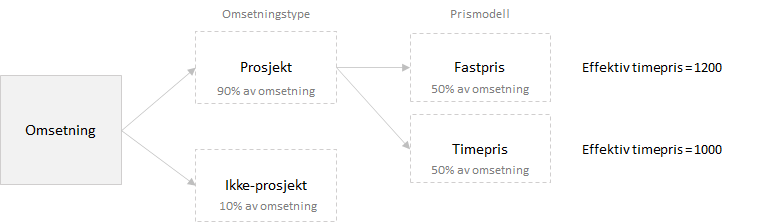 Dersom du klarer å øke timeprisen for "timepris-prosjektene" fra kr 1.000 til kr 1.200 med samme kostnadsbase, så vil dette utgjøre 9 millioner kroner både i økte inntekter og driftsresultat.