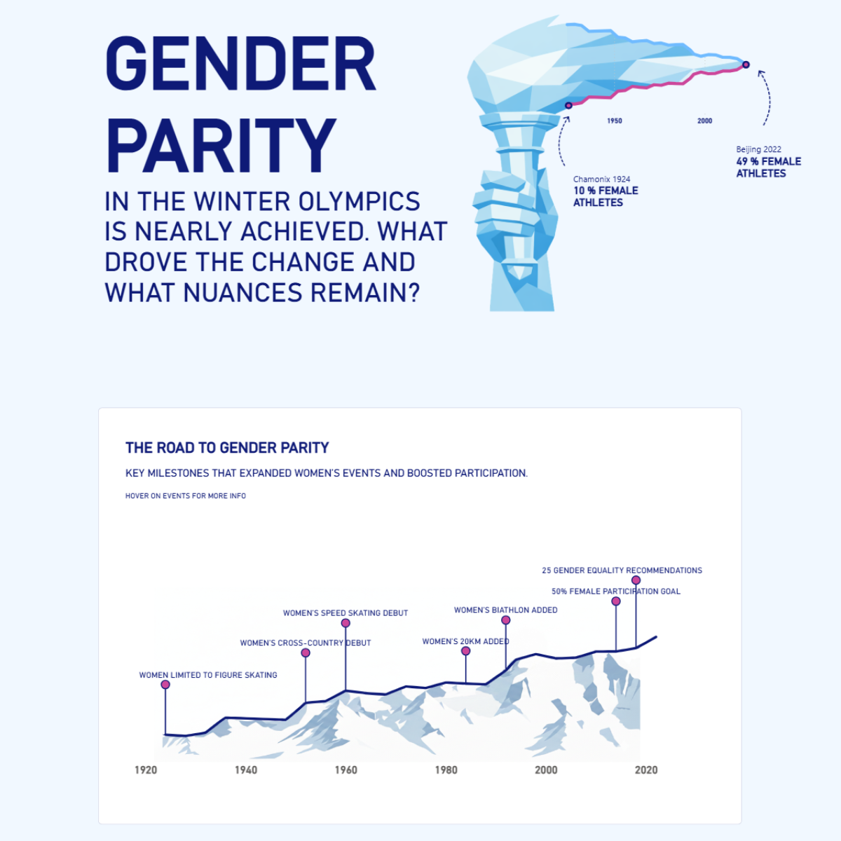 Som nordmann – med et forholdsvis sterkt forhold til vintersport valgte Marius å utforske utviklingen i kjønnsbalanse i vinter-OL. Her fulgte han en strukturert tilnærming med kontekst → innsikt → effekt.