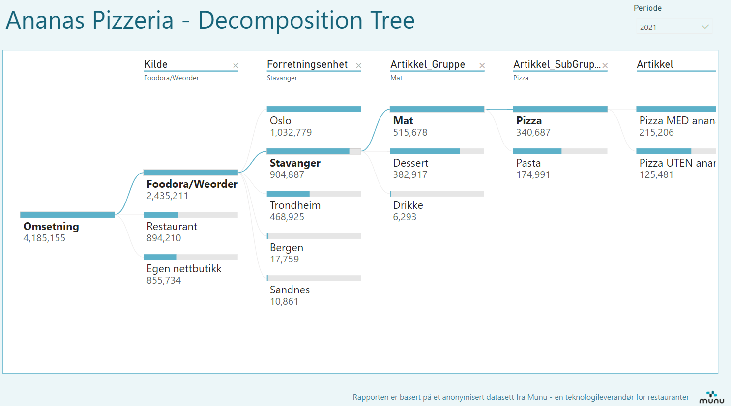 Som en demo kan du selv teste hvordan øvelsen gjøres i Power BI for Ananas Pizzeria under: