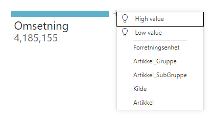 Du kan enten velge selv eller be Power BIs AI-funksjonalitet velge dimensjonen som har størst påvirkning (High value).